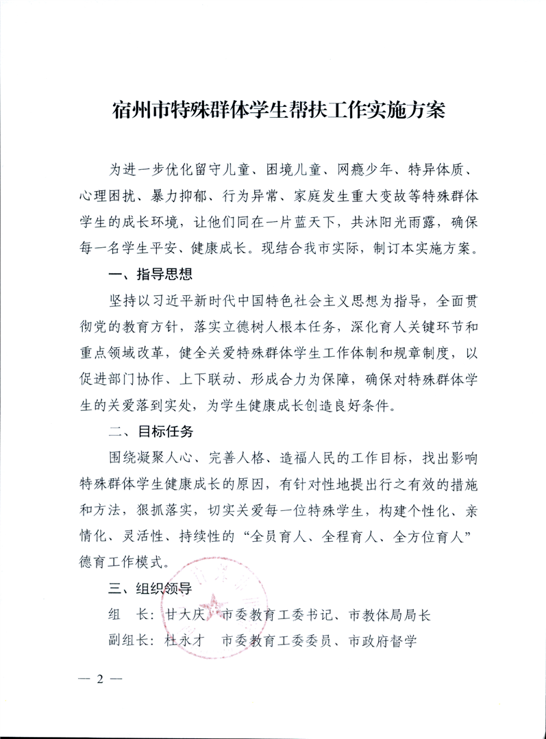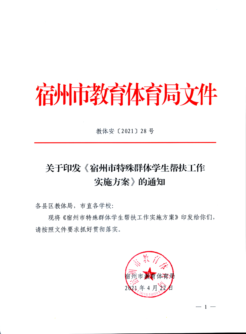 關(guān)于印發(fā)《宿州市特殊群體學(xué)生幫扶工作實(shí)施方案》的通知
