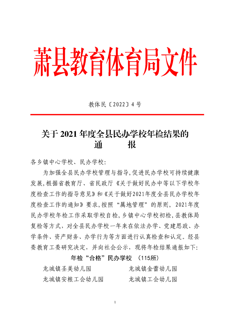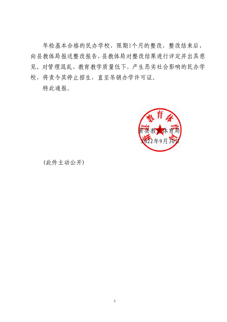 關(guān)于2021年度全縣民辦學(xué)校年檢結(jié)果的通報
