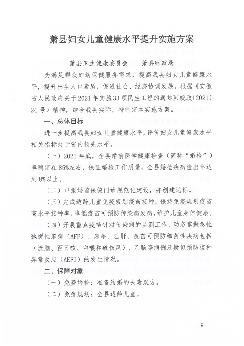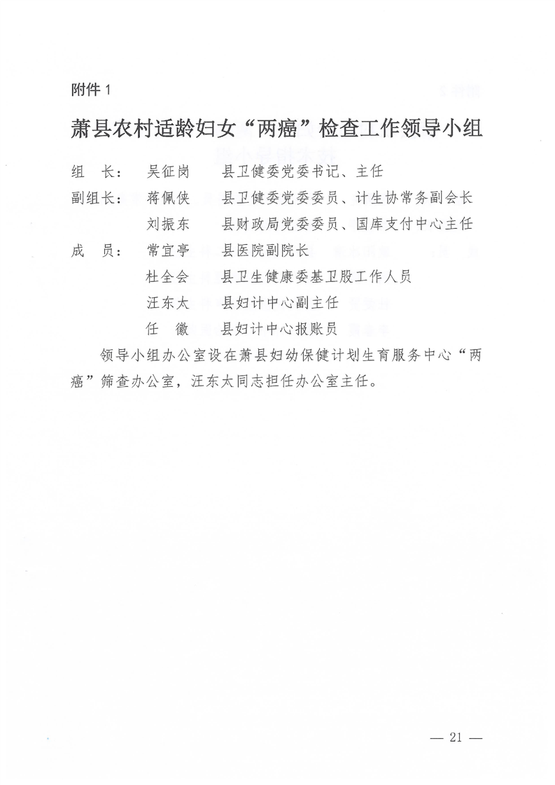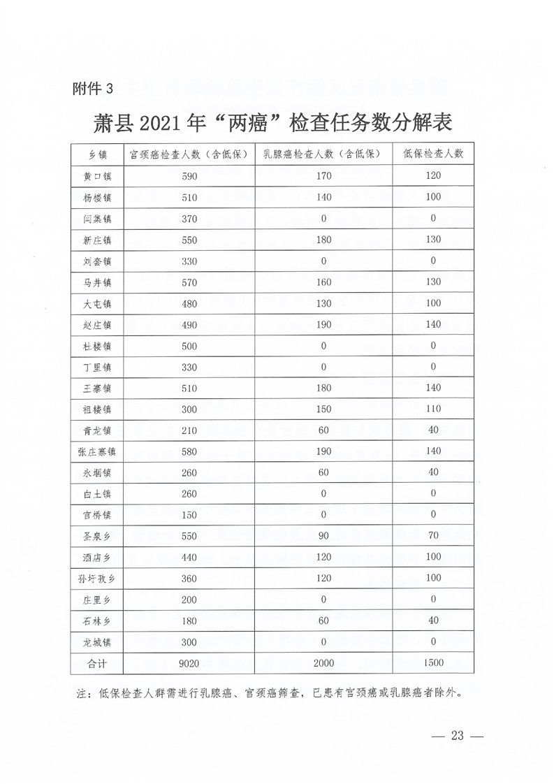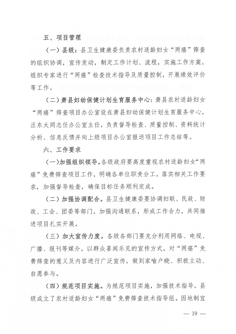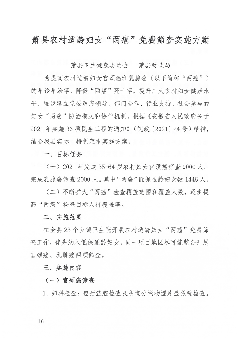 蕭縣農村適齡婦女“兩癌”免費篩查實施方案