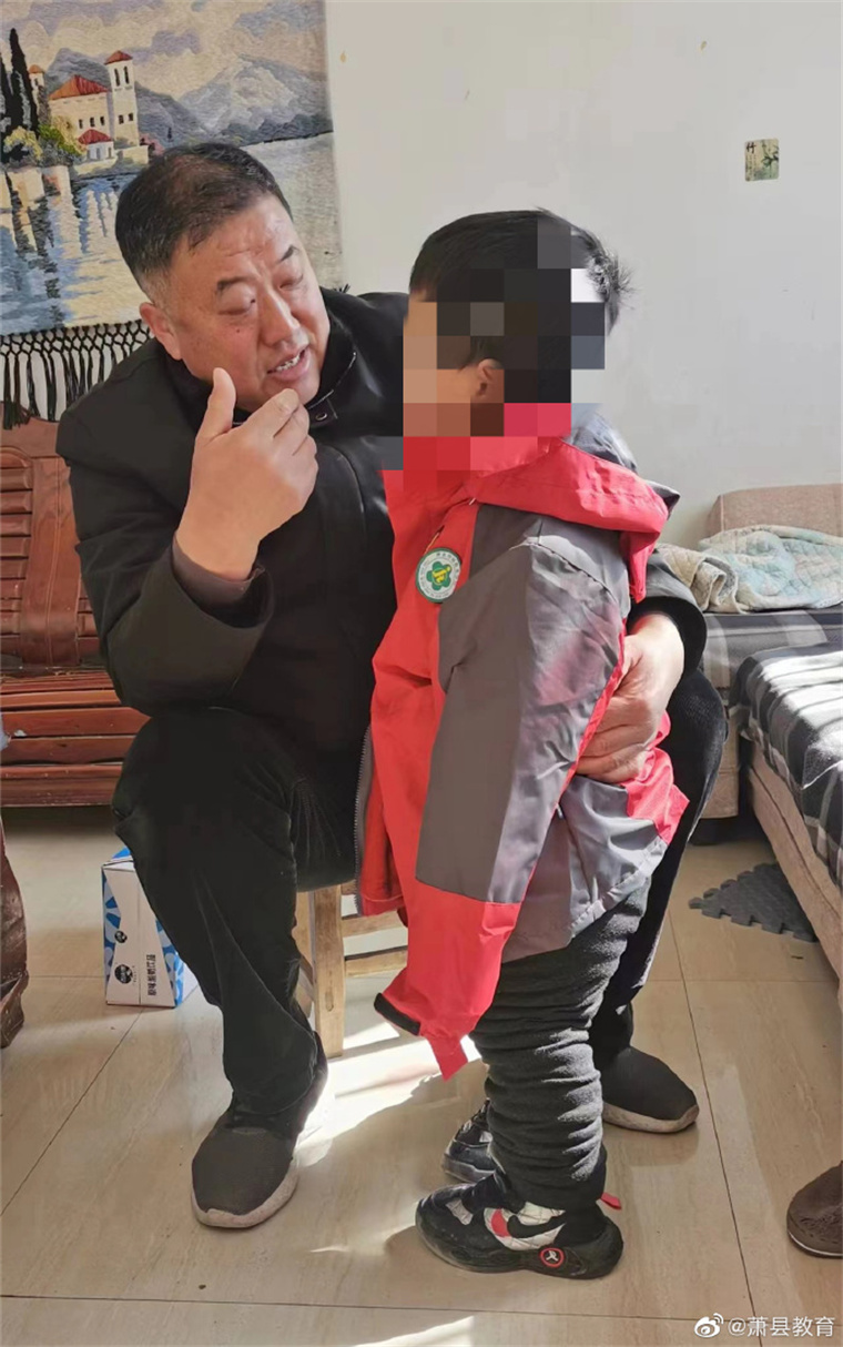 送教上門是學(xué)校與家庭共同教育好重度殘疾兒童的一道橋梁。為了全面落實(shí)《十四五特殊教育行動(dòng)提升計(jì)劃》,提高送教質(zhì)量,蕭縣特校改變了以往的送教模式,成立送教組,建立“一生一案”資料管理室。同時(shí),分類實(shí)施,對(duì)重度殘疾孩子采取送溫暖送康復(fù)為主;對(duì)有學(xué)習(xí)能力的學(xué)生采取“精準(zhǔn)送教+網(wǎng)絡(luò)授課”的模式?!皩W(xué)生在哪里,送教到哪里”,該校教師把溫暖送到了每個(gè)孩子的心里,把信心帶到了每一個(gè)家庭。
