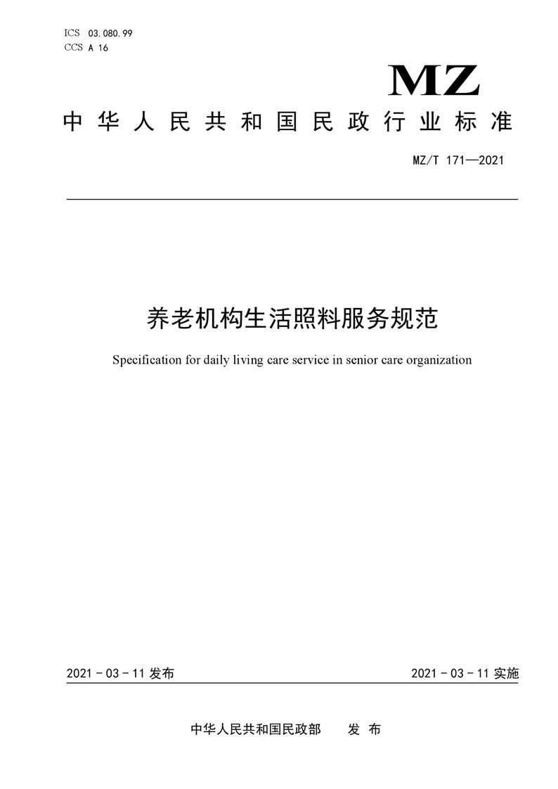 養(yǎng)老機構(gòu)生活照料服務(wù)規(guī)范