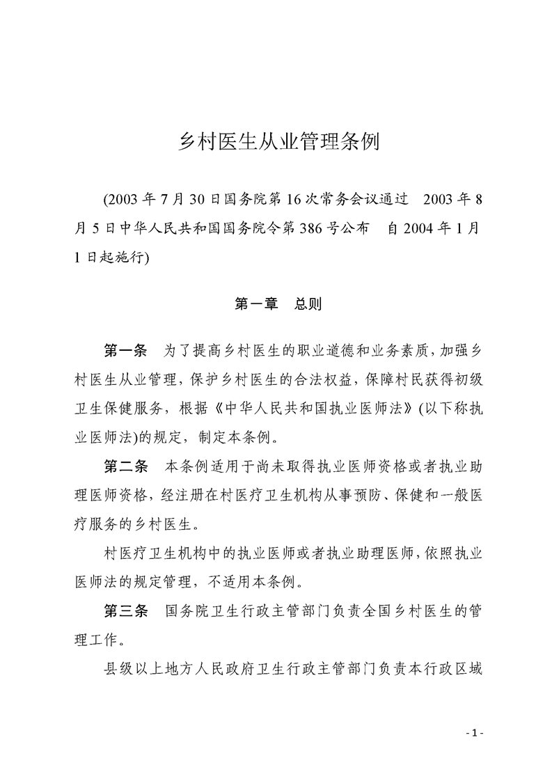 【行政法規(guī)】鄉(xiāng)村醫(yī)生從業(yè)管理條例