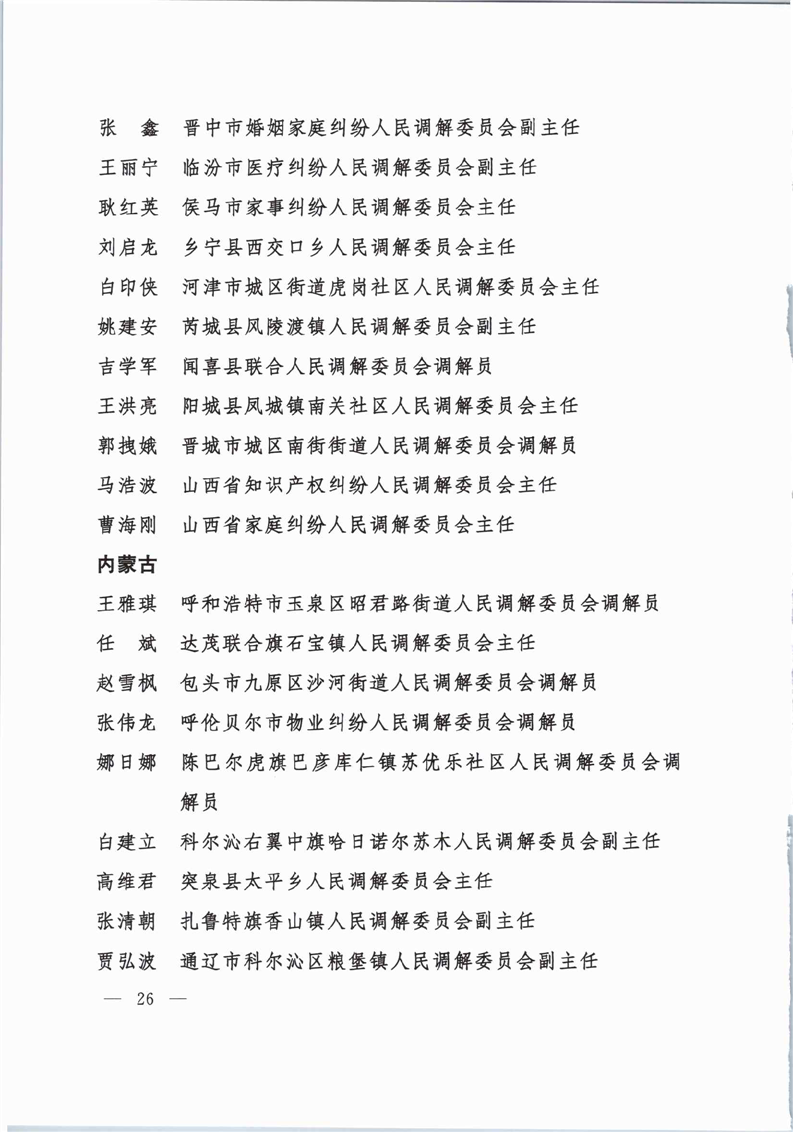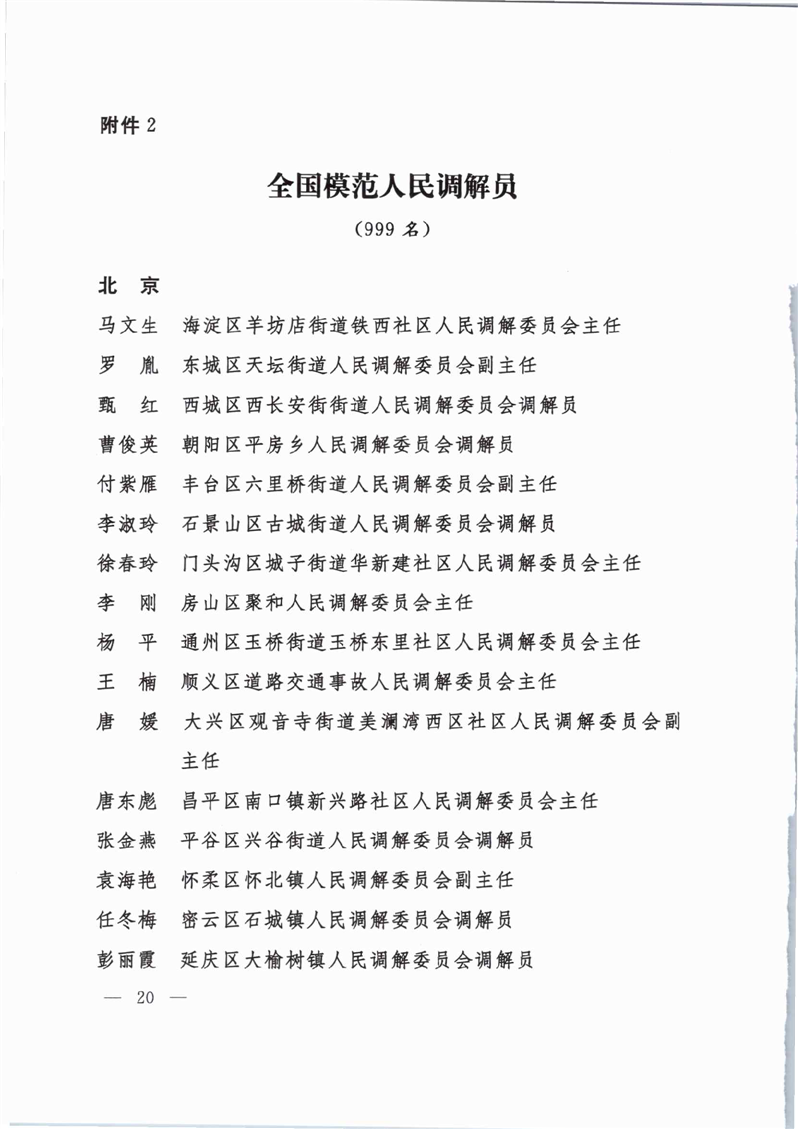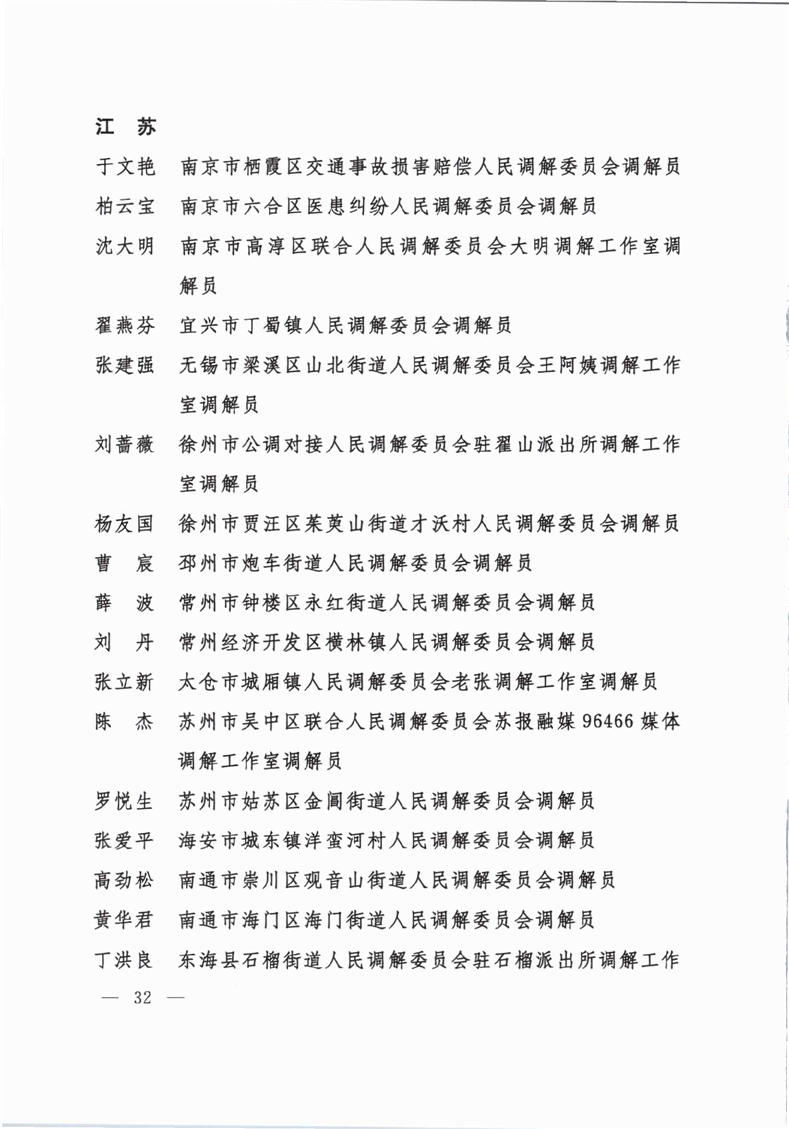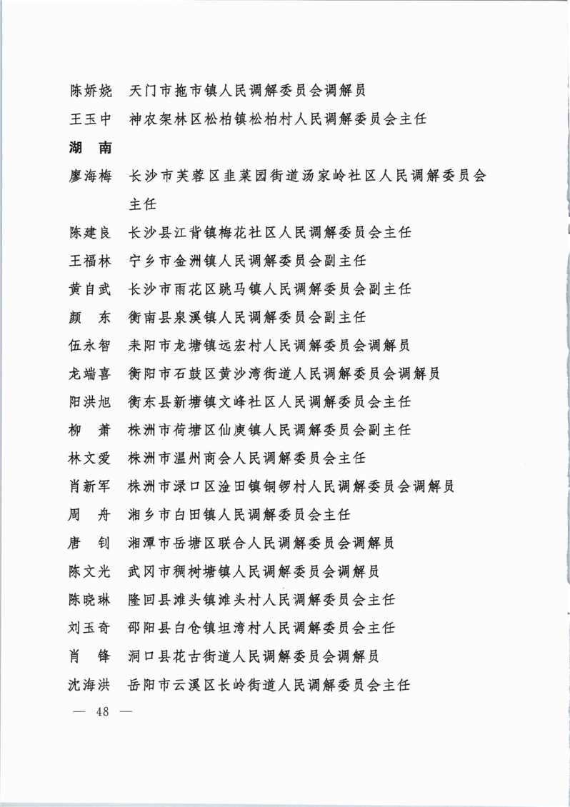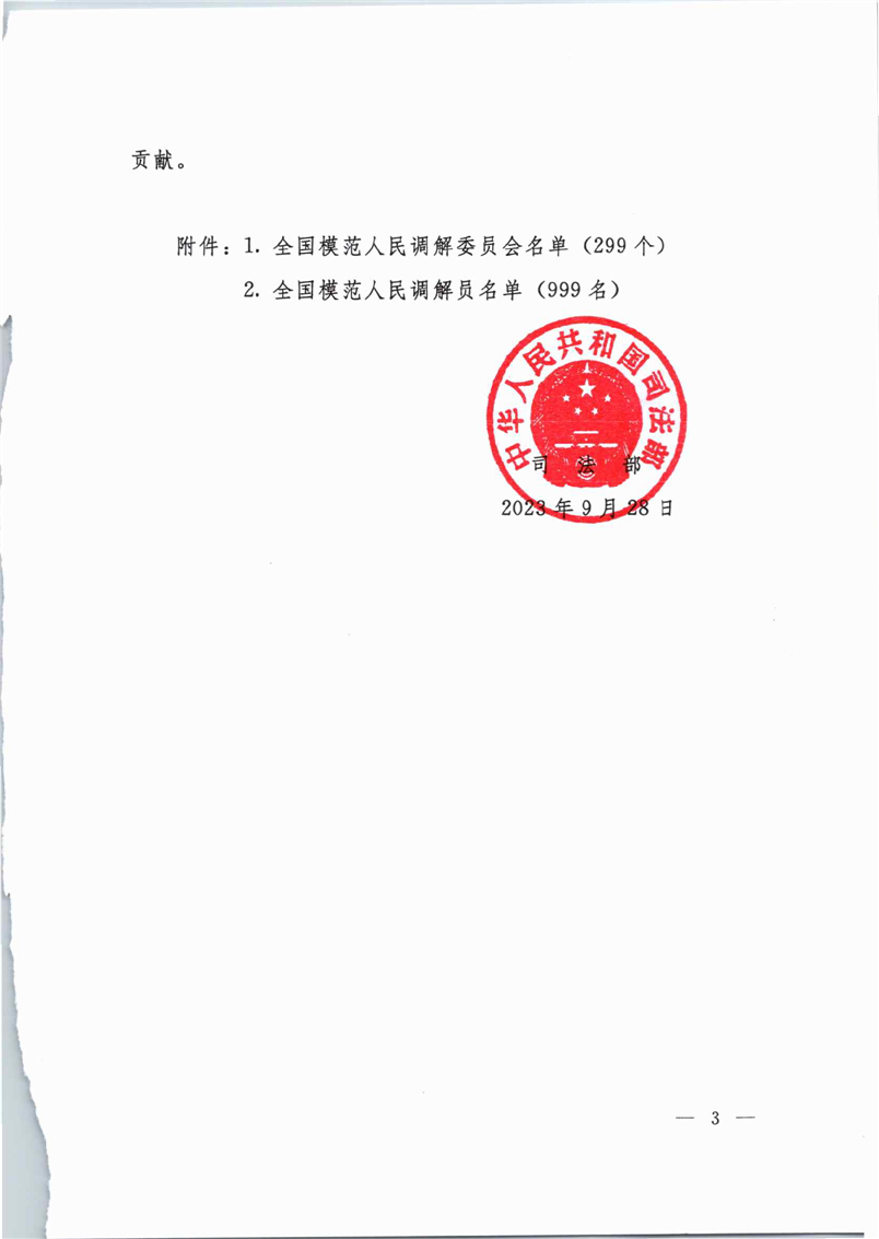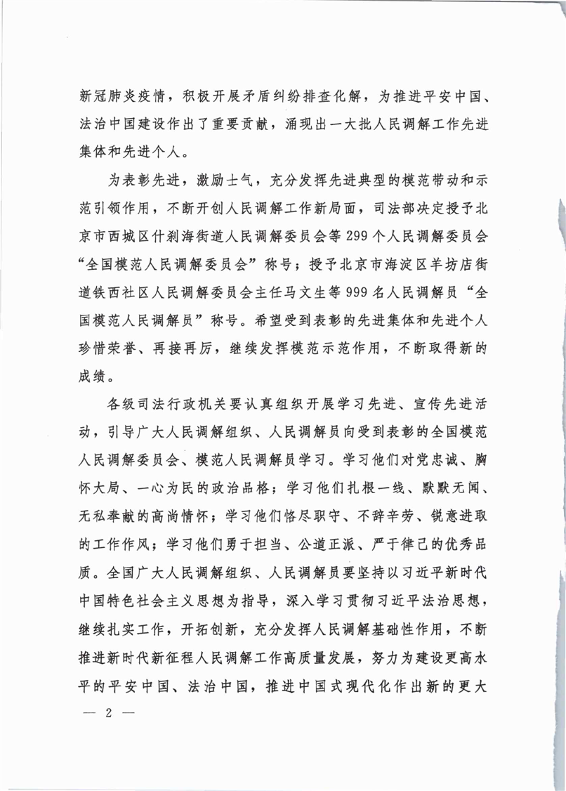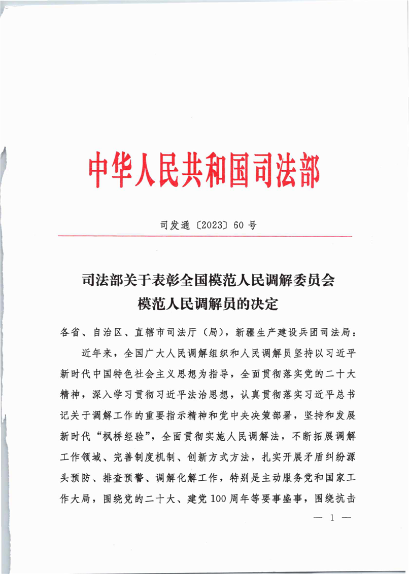 【表彰決定】司法部關(guān)于表彰全國模范人民調(diào)解委員會(huì)模范人民調(diào)解員的決定