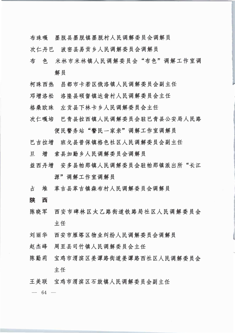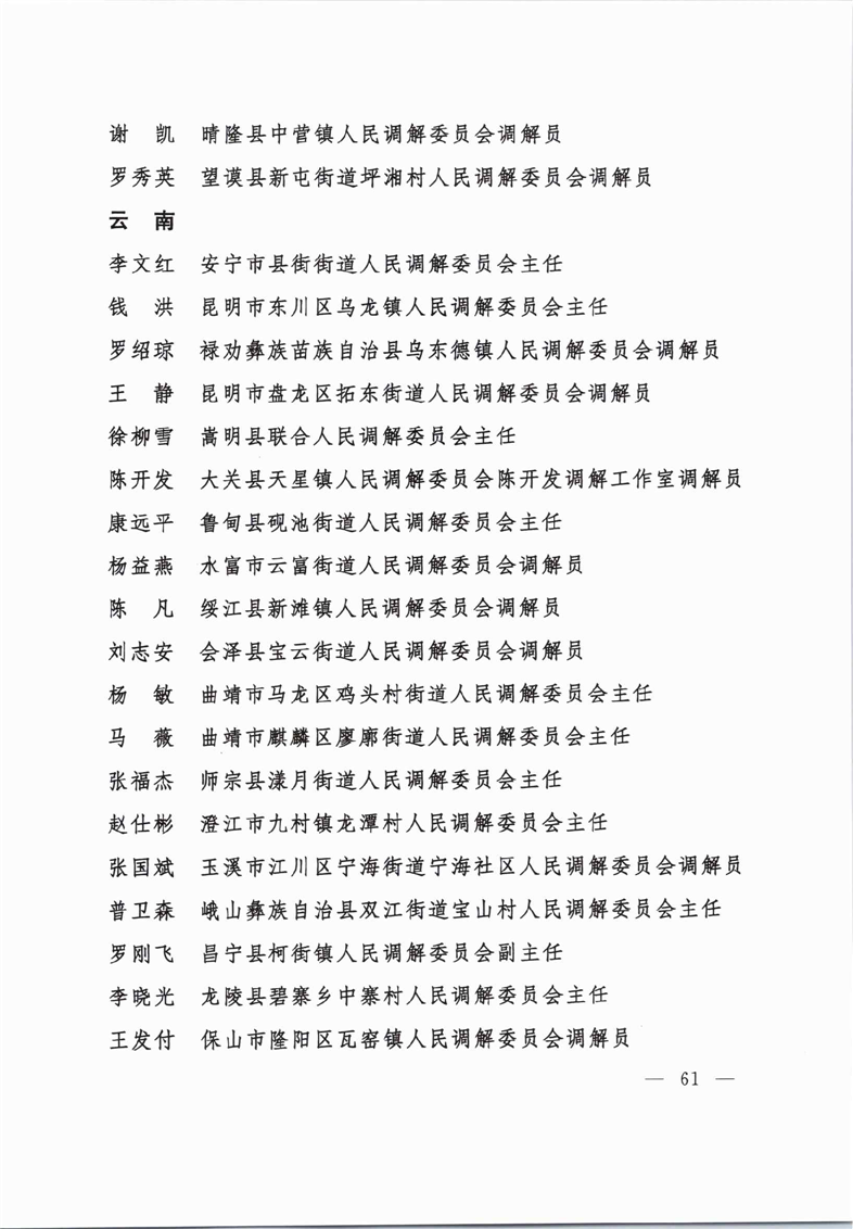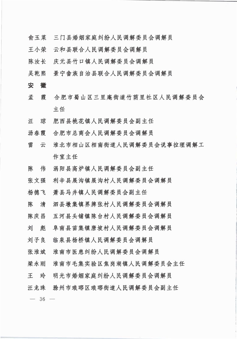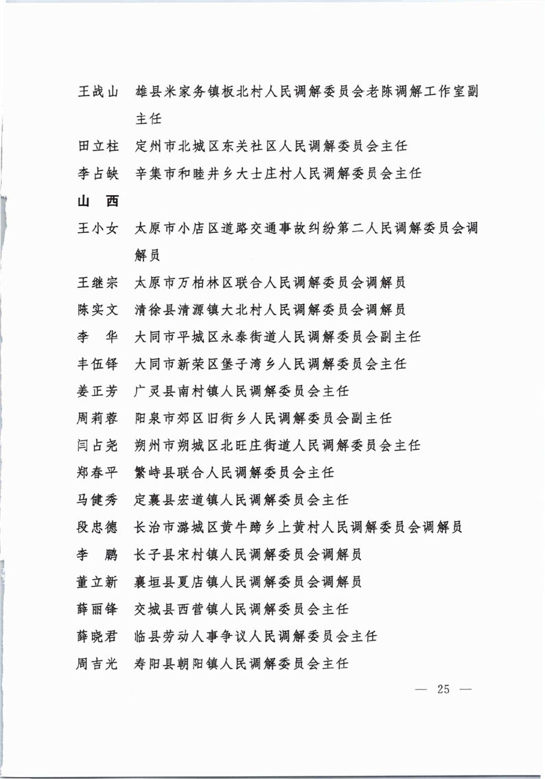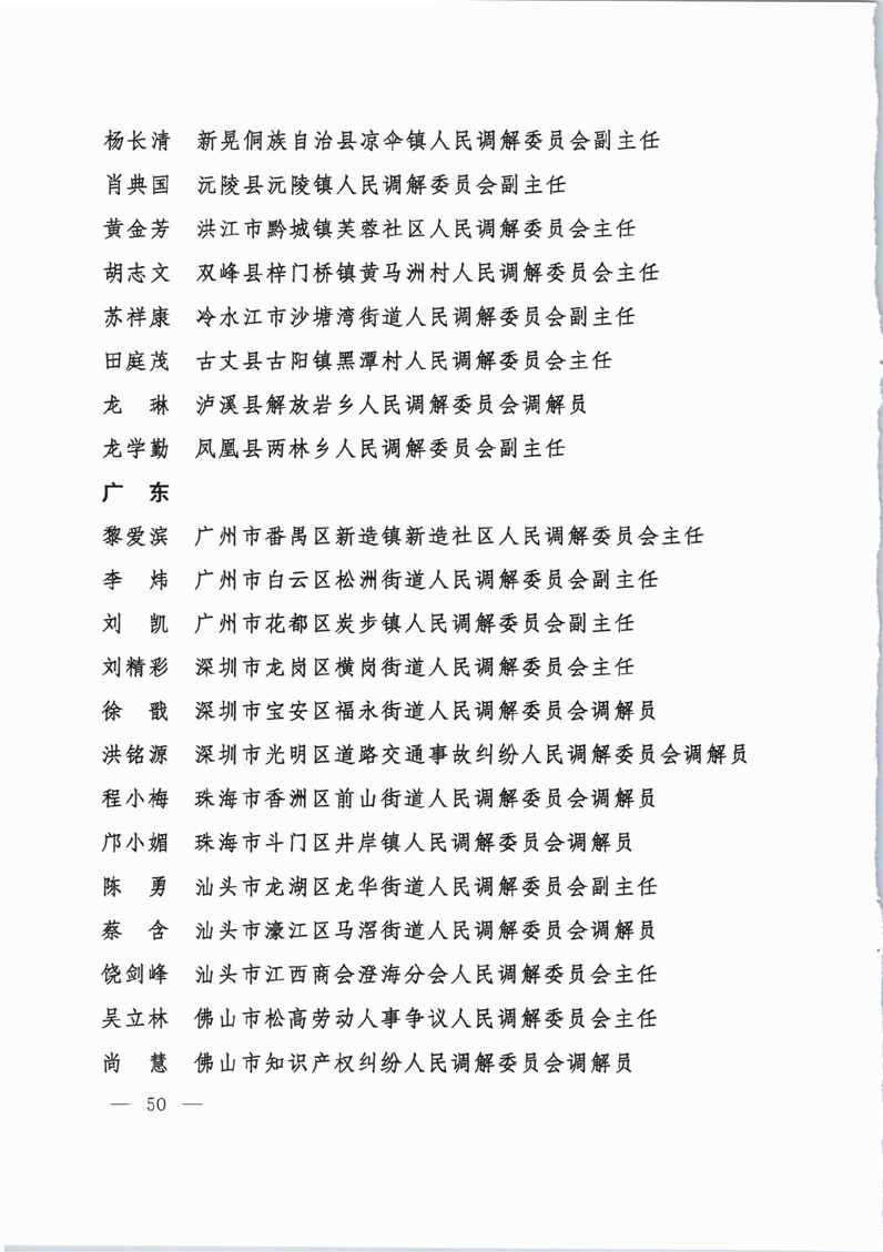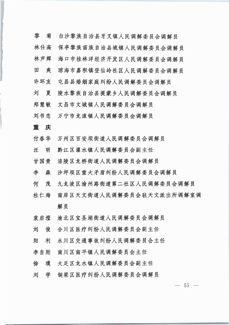 【表彰決定】司法部關(guān)于表彰全國模范人民調(diào)解委員會(huì)模范人民調(diào)解員的決定
