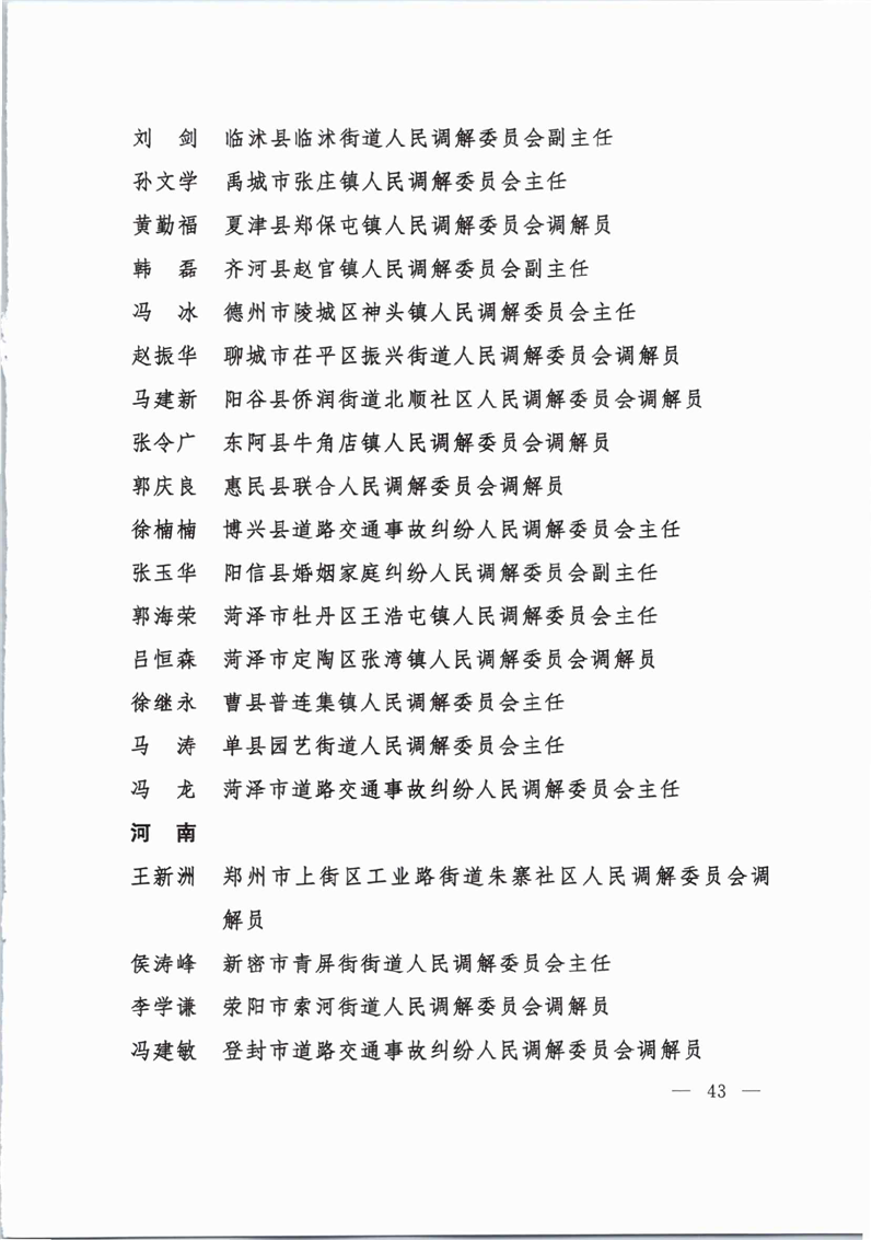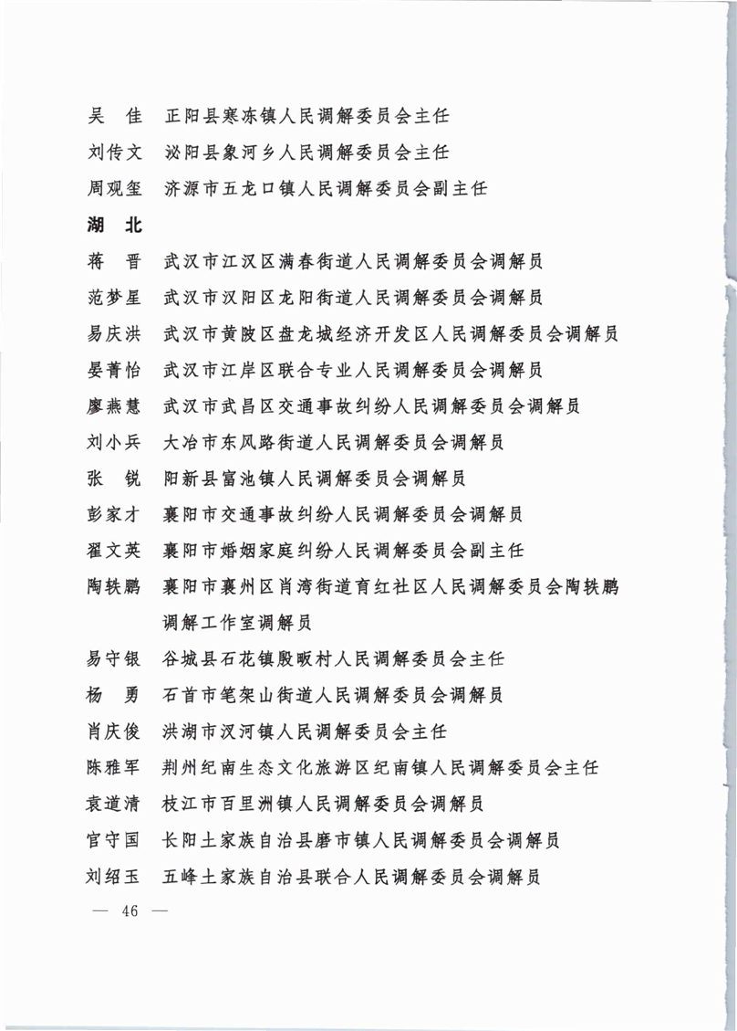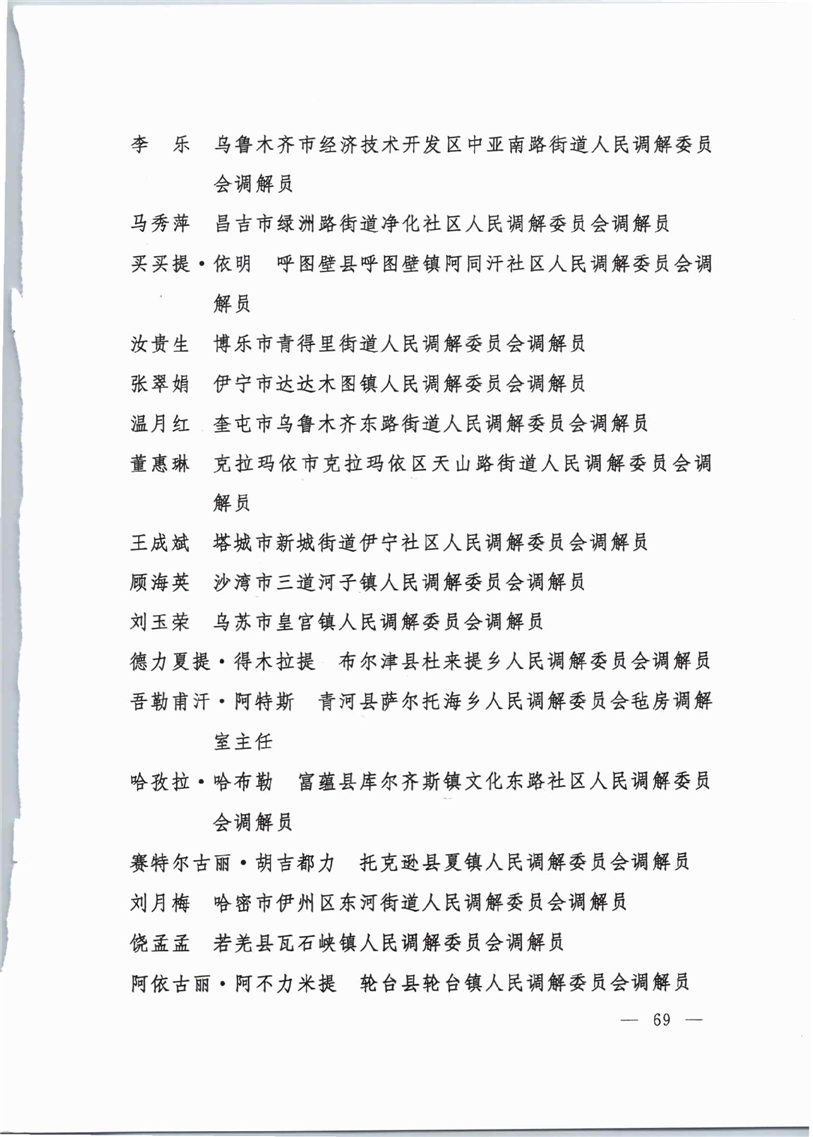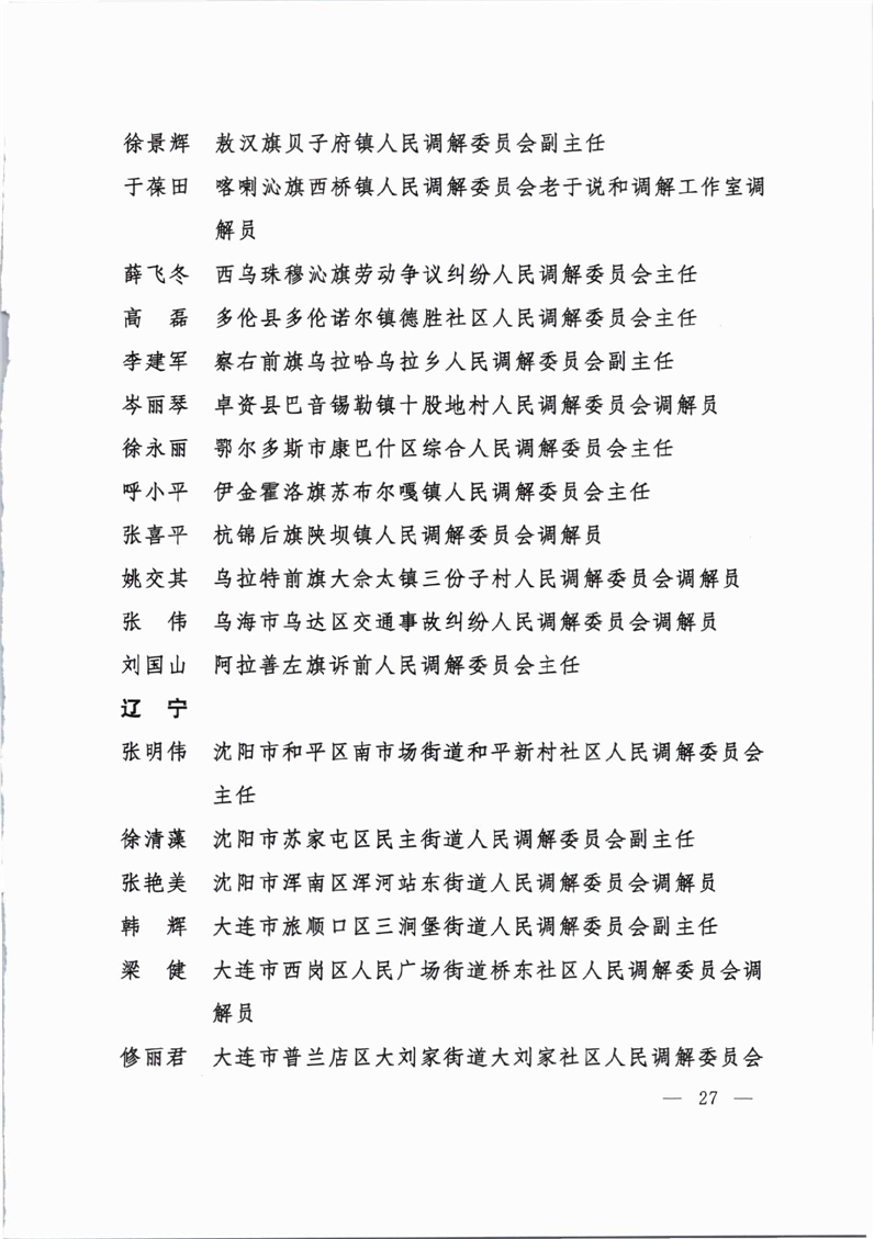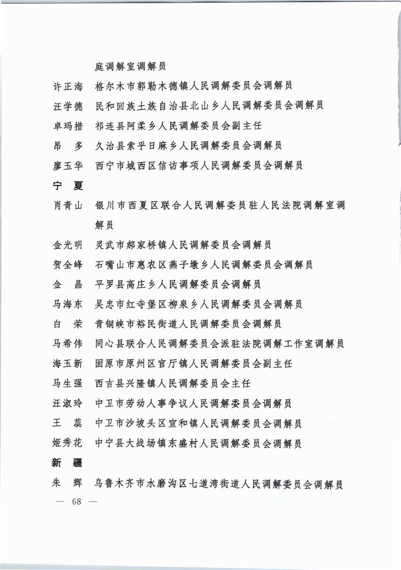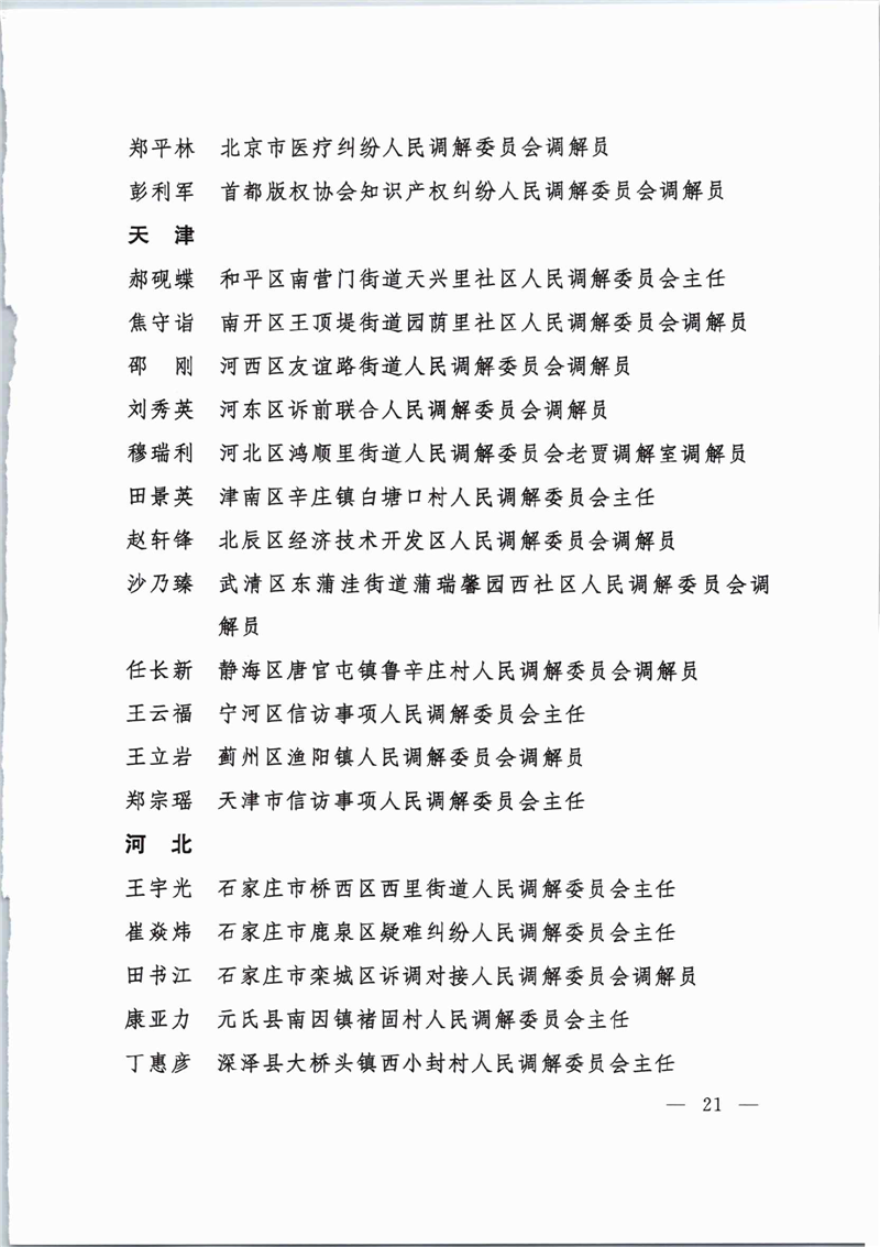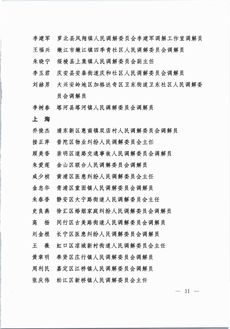 【表彰決定】司法部關(guān)于表彰全國模范人民調(diào)解委員會(huì)模范人民調(diào)解員的決定