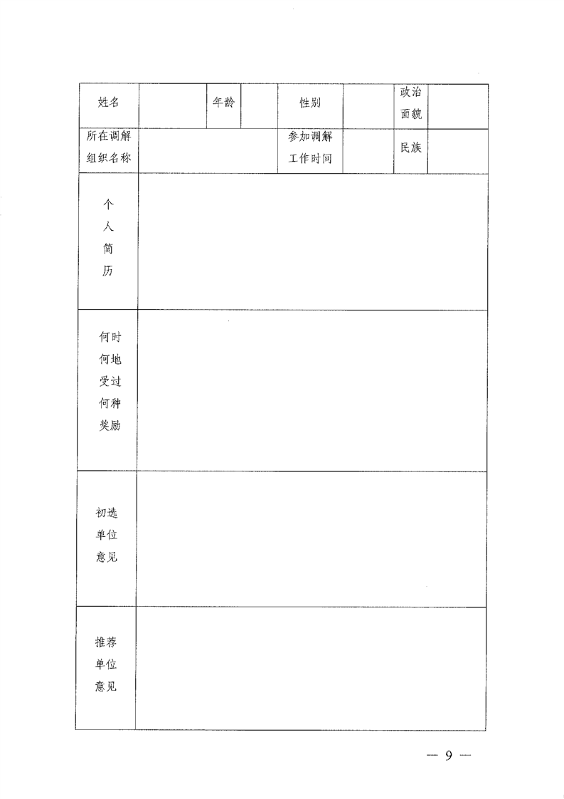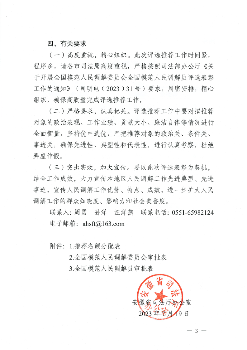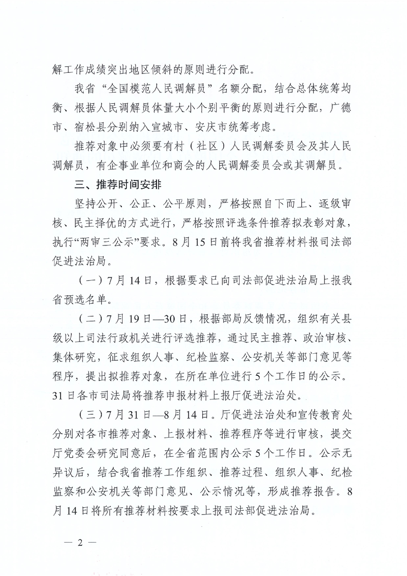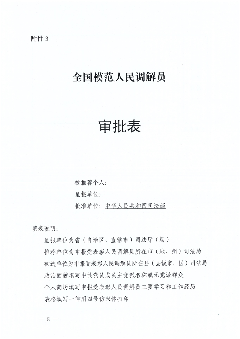【表彰通知及申請表】安徽省司法廳辦公室關(guān)于評選推薦全國模范人民調(diào)解委員會全國模范人民調(diào)解員的通知