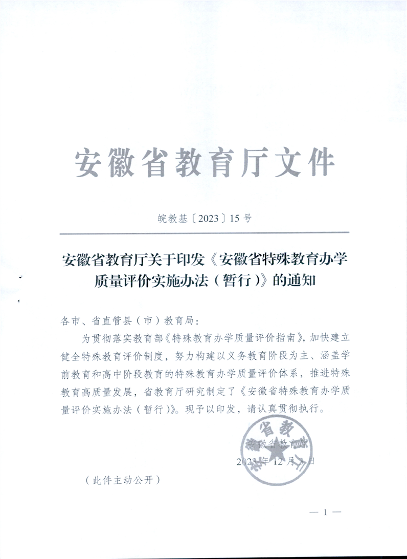 【政策文件】安徽省教育廳關于印發(fā)《安徽省特殊教育辦學質量評價實施辦法(暫行)》的通知