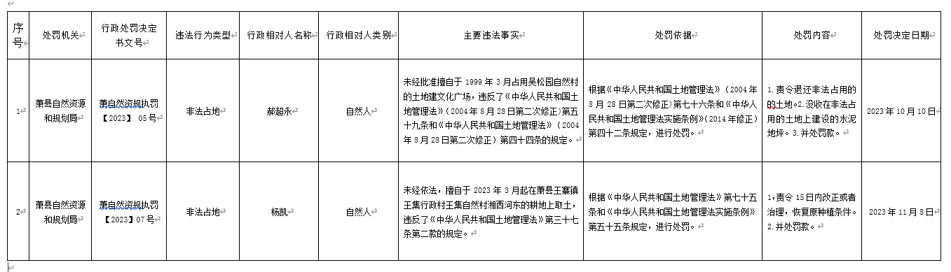 蕭縣自然資源和規(guī)劃局2023年行政處罰案件(二)