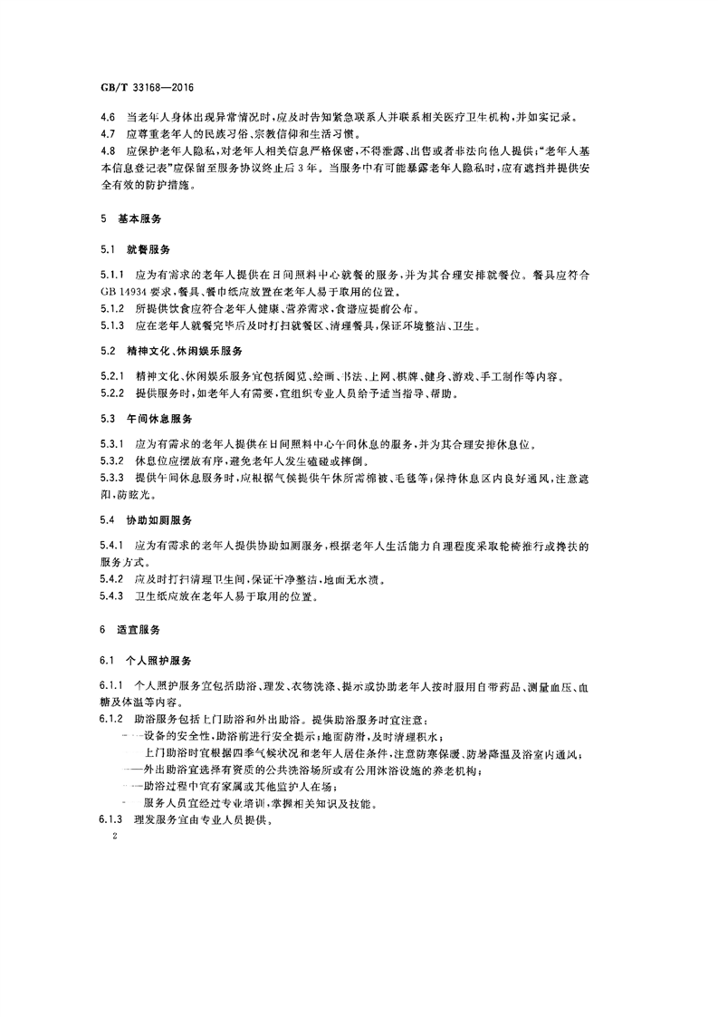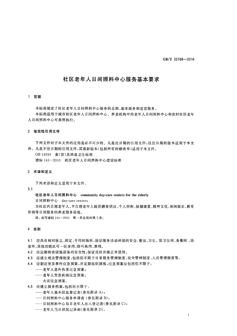 社區(qū)老年人日間照料中心服務(wù)基本要求