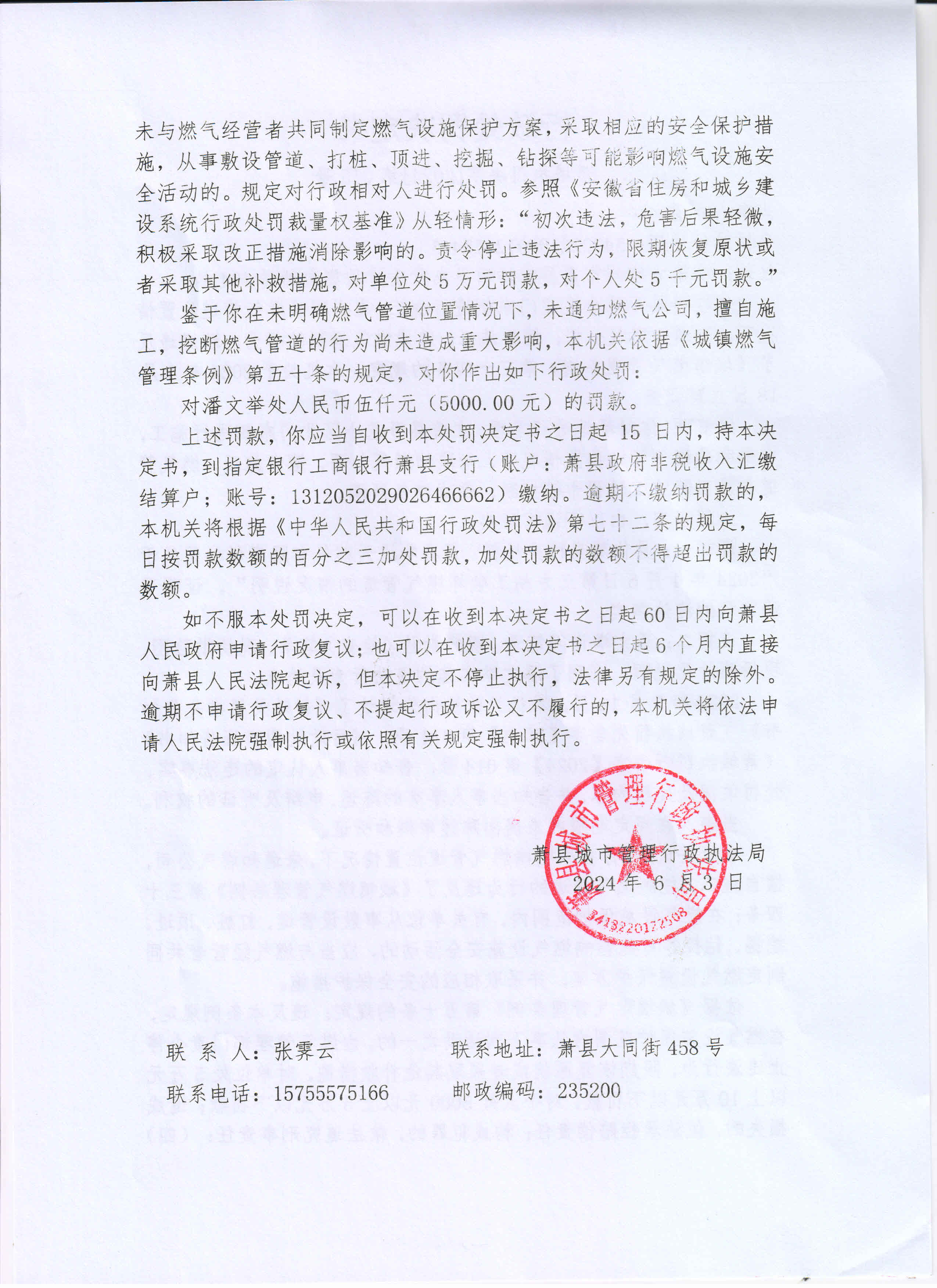 蕭縣城市管理局2024年相對(duì)集中其他領(lǐng)域處罰權(quán)事項(xiàng)行政處罰公示(三)