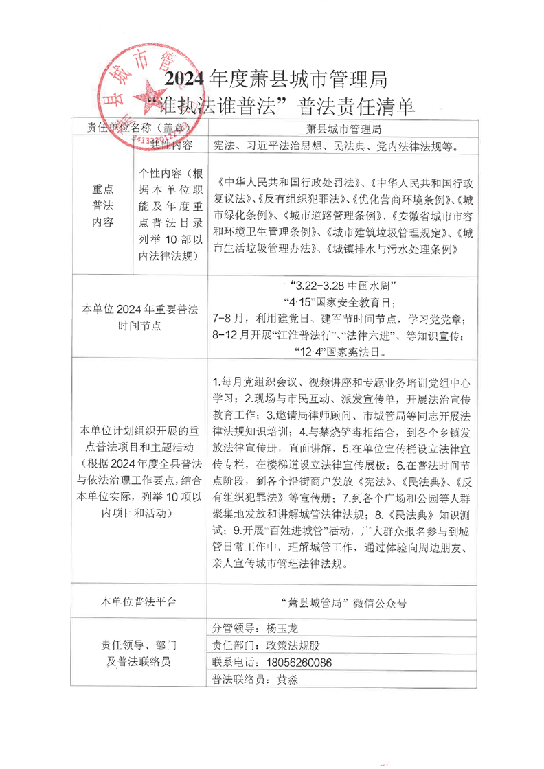 蕭縣城市管理局2024年“誰(shuí)執(zhí)法誰(shuí)普法”普法責(zé)任清單