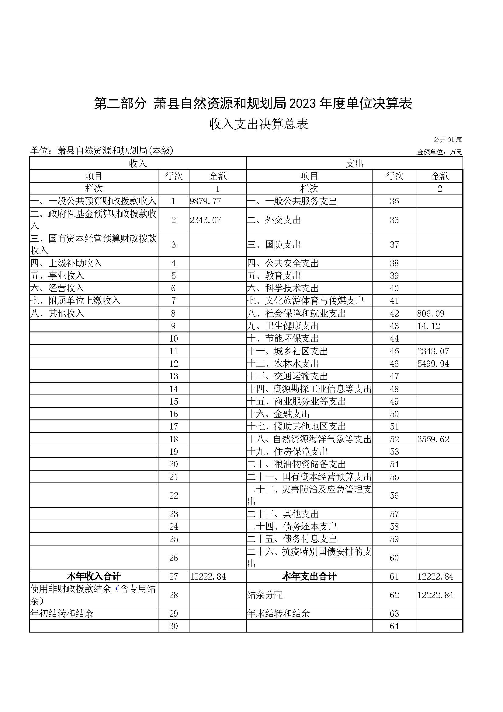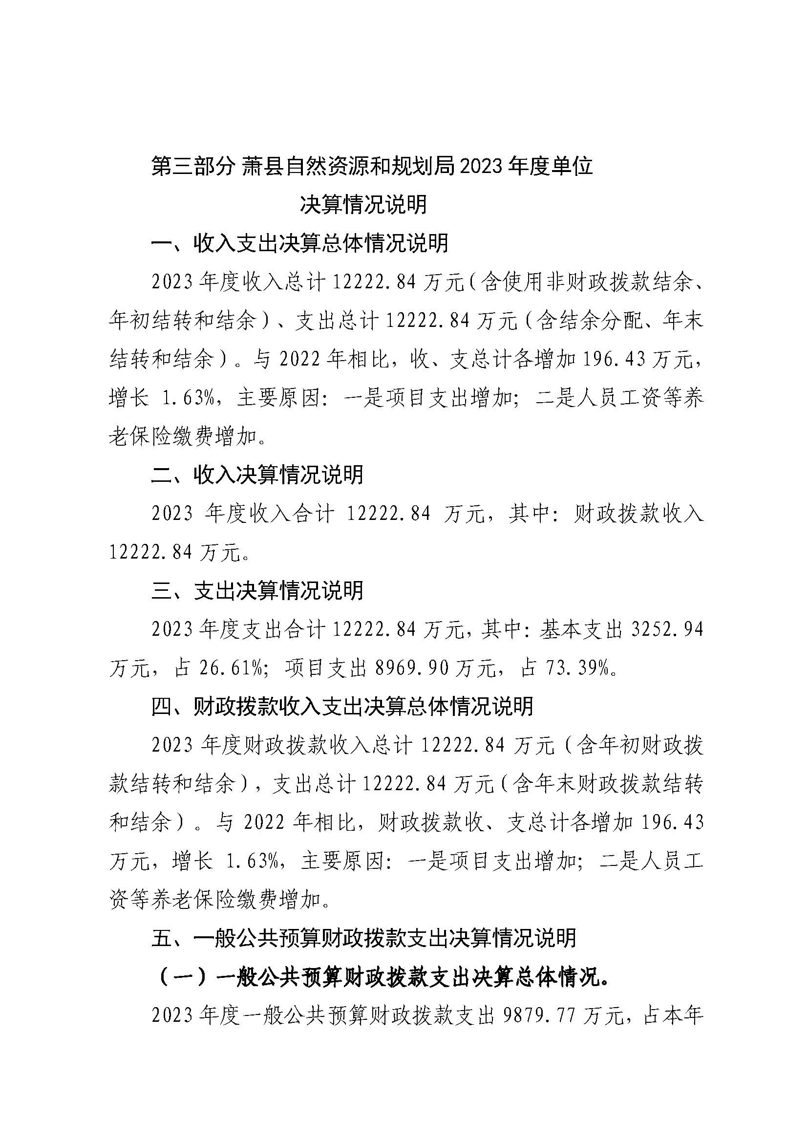 蕭縣自然資源和規(guī)劃局2023年度本級(jí)決算