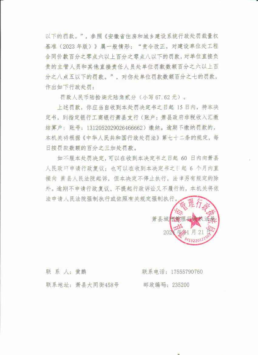 蕭縣城市管理局2024年相對(duì)集中其他領(lǐng)域處罰權(quán)事項(xiàng)行政處罰公示(五)