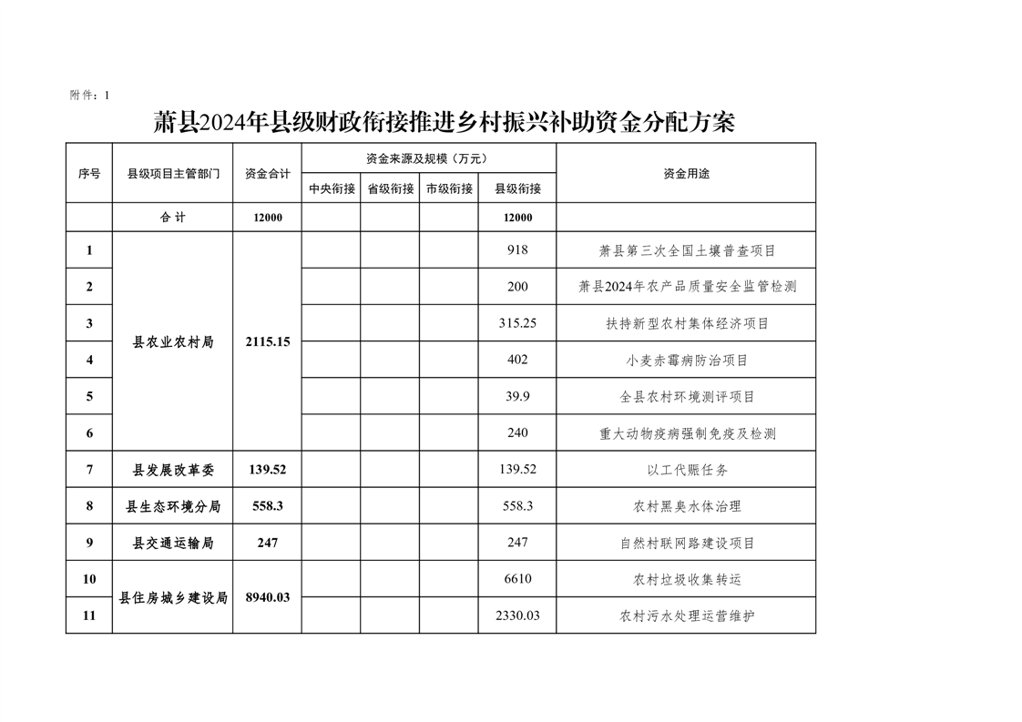 蕭縣2024年縣級財政銜接推進鄉(xiāng)村振興補助資金使用年度計劃