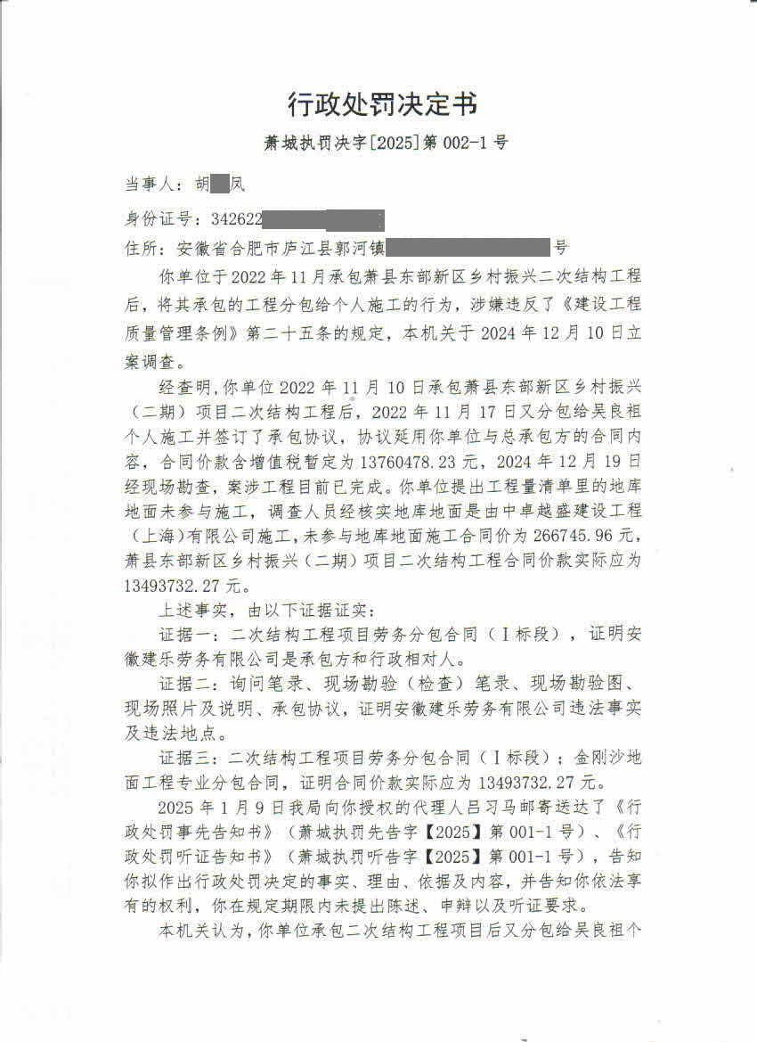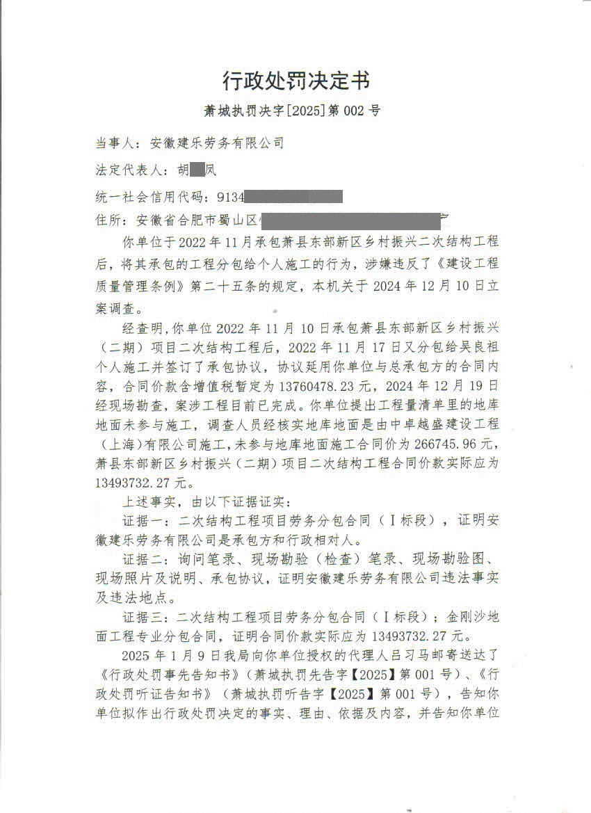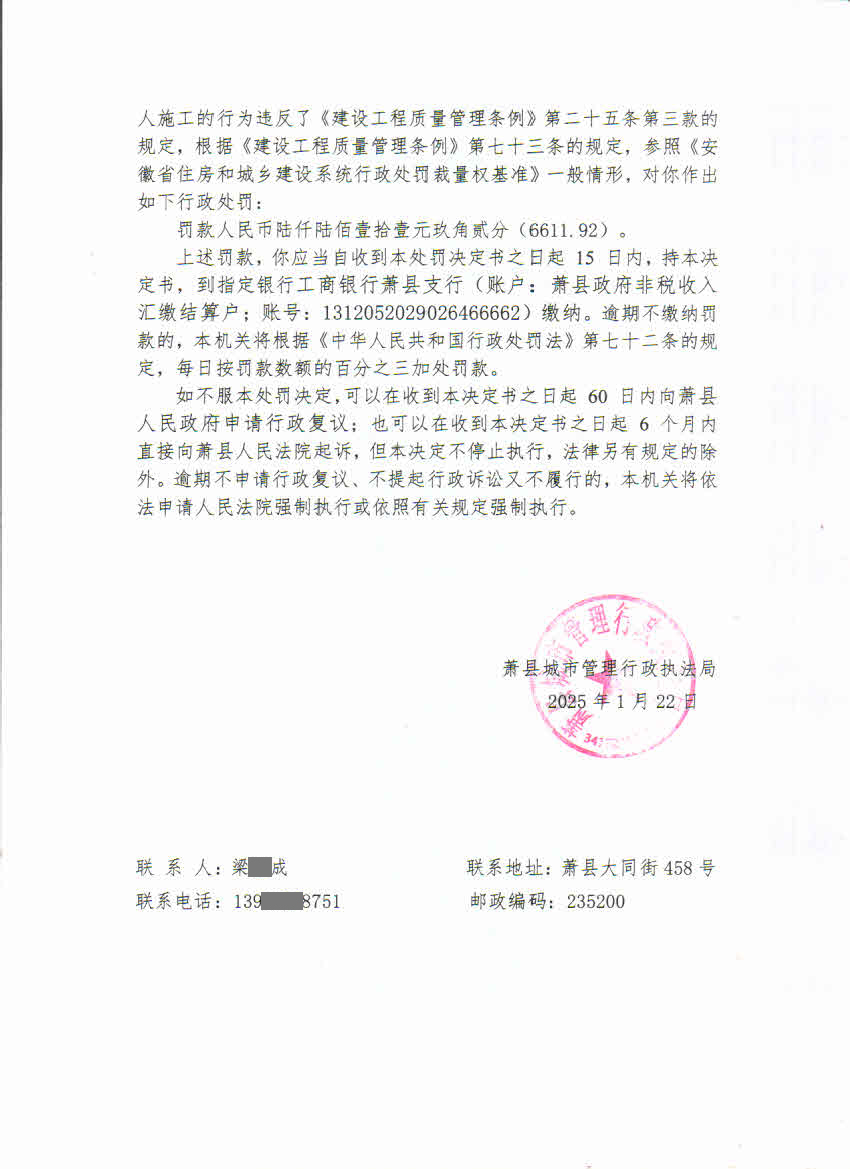 蕭縣城市管理局2025年工程建設(shè)管理行政處罰公示(二)