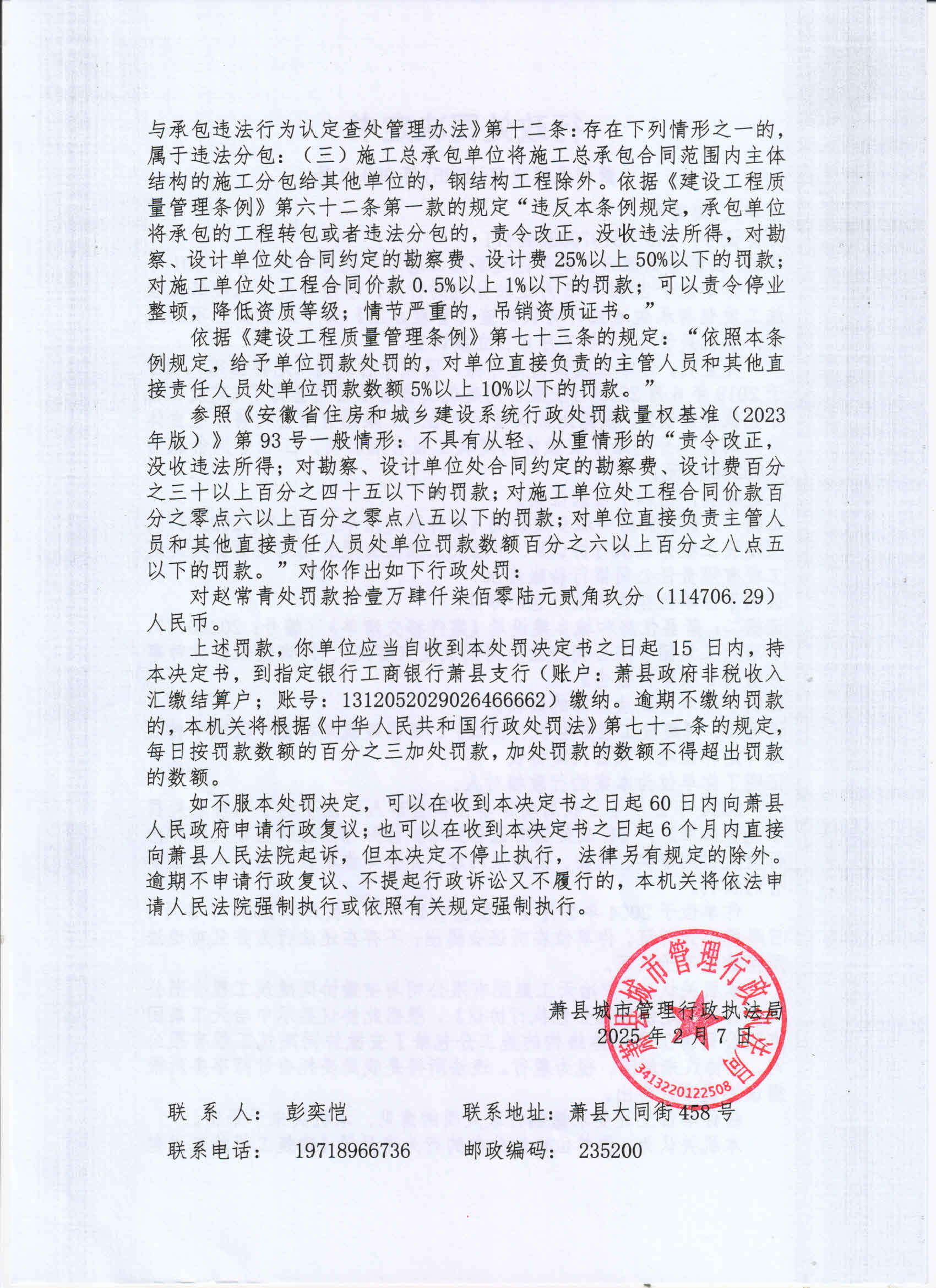蕭縣城市管理局2025年工程建設(shè)管理行政處罰公示(三)