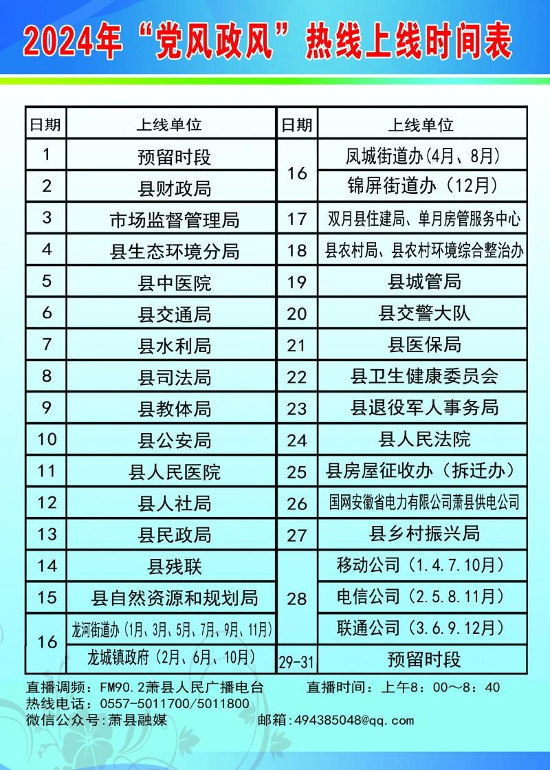 如有相關(guān)問題需要反映或咨詢 可在當(dāng)天早上8:00—8:40 撥打《黨風(fēng)政風(fēng)熱線》熱線電話 0557-5011700或0557-5011800
