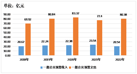 全年一般公共預(yù)算收入20.54億元,下降12.8%。其中,稅收收入11.07億元,下降14.8%。一般公共預(yù)算支出80.38億元,增長3.8%。其中,一般公共服務(wù)支出5.34億元,增長2.6%;社會保障與就業(yè)支出17.77億元,增長12.8%;節(jié)能環(huán)保支出2.57億元,下降15.5%;教育支出18.14億元,增長8.2%;衛(wèi)生健康支出5.13億元,下降4.9%;城鄉(xiāng)社區(qū)支出2.38億元,下降46.6%;農(nóng)林水支出17.49億元,增長5.9%;交通運(yùn)輸支出2.47億元,增長117.0%;科學(xué)技術(shù)支出0.53億元,增長4.9%。