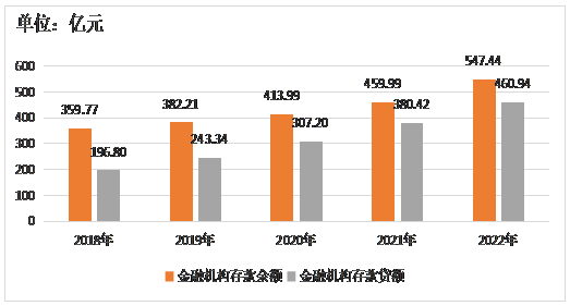 2018-2022年全縣金融機(jī)構(gòu)(本外幣)存貸款余額