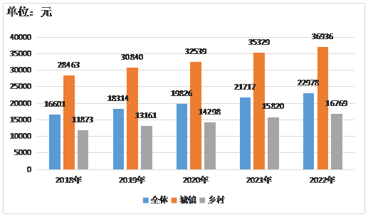 2018-2022年全縣全體、城鎮(zhèn)和農(nóng)村人均可支配收入